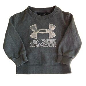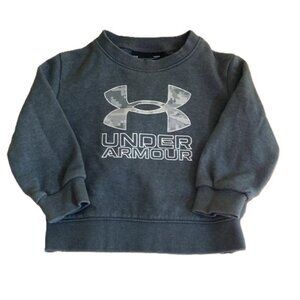 A very soft blended cotton/polyester sweatshirt from Under Armour. Long sleeves and a crew neck with logo on the front. Age 18M.