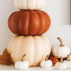 18PCS White Pumpkins - Assorted Foam Pumpkins with Detachable Stems, Fall