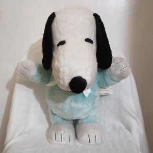 2017 large Peanuts Snoopy standing plush that is pre-owned and came with bunny ears built into the seam of his head, but I removed the bunny ears and sewed back the top of his head along the seam so that he can stay on display year-round, not just for Easter. His legs and feet are weighted so that he stands up on his own.