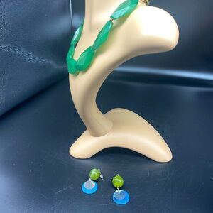 18” gold toned necklace with 3” extender with green stones paired with earrings