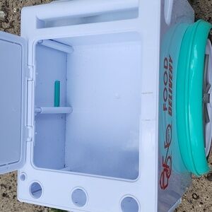 Delight your 18in with this fun food delivery tricycle toy. Featuring a vibrant teal and white design, it's perfect for imaginative play. Encourage creativity and role-playing with this charming toy.