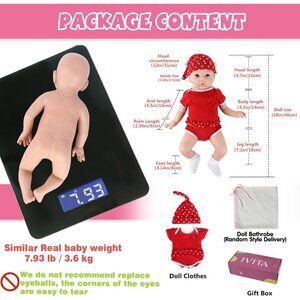 * [Doll Size and Package] WG1508: (18inch), 3999g, Blue Eyes, Open mouth can contain pacifier , Eyeballs can be replaced; Package included: 1 Reborn baby doll; 1 set of clothes; 1 baby collection box;