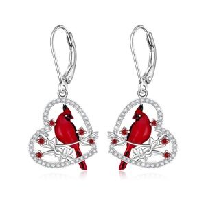 Gorgeous red Cardinal diamond earrings NWOT perfect for the angel of your life. Two cardinals with hand painted red enamel, and solid silver backsides to hold securely in the heart.