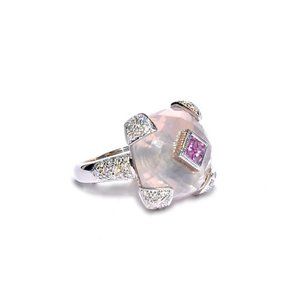 18k Diamond, Pink Sapphire & Rose Quartz Statement Ring
