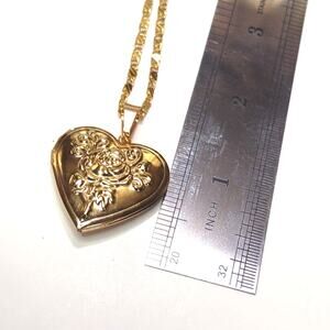 1 1/4 in. Elegant Rose Heart Locket Pendant With 24 in. 18k Gold Plated Necklace Chain & Complementary Drawstring Gift Bag.