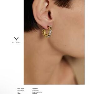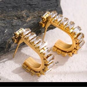 18k Gold C Shape Diamond Hoop Earrings