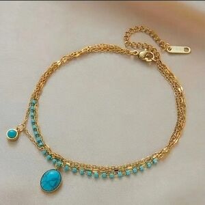 18k Gold Chic Boho Triple Layered Turquoise Bracelet
