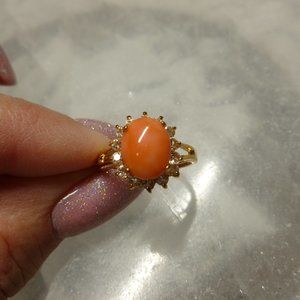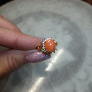 18k Gold EP Coral Swarovski Crystals Dolphin Ore Ring