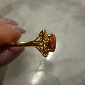 18k Gold EP Goldstone Swarovski Crystals Dolphin Ore Ring