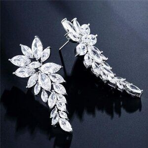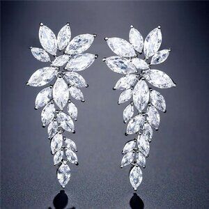 Elegant 18k Real Gold Plated Grade 3A Cubic Zirconia Leaf Vine Statement Bridal Bridesmaid Bride Wedding Earrings!
