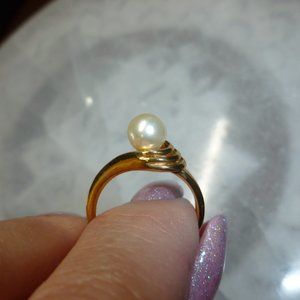 18k Gold Electroplate Natural Pearl Dolphin Ore Ring