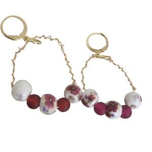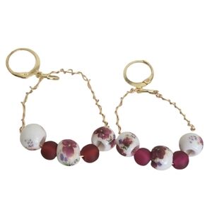 18k Gold Peony Floral Frosted Glass Hoop Huggie Earring