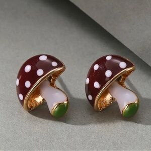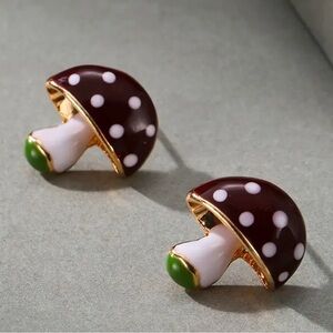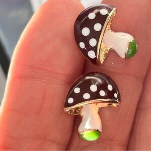18k Gold Plated Adorable Enamel Brown & Green Magic Mushroom Stud Earrings NEW . Last pair I have . These are insanely cute . I’m obsessed with them !