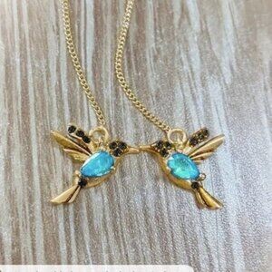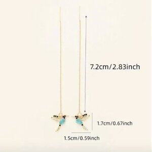 18k Gold Plated Blue Diamond Hummingbird Drop Earrings
