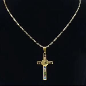 NEW 18k Gold Plated Cross Necklace Christmas Birthday Mens Women's Vtg. Fashion Gift