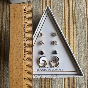 Set of 4 pairs of earrings in original packaging - 3 pairs of studs and 1 pair of huggie hoops