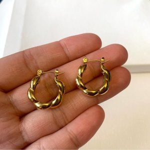 18k Gold Plated Elegant Minimalist textured Hoop Earrings