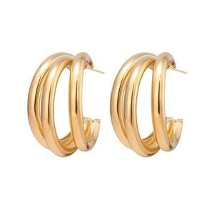 18k Gold Plated Geometric C-Shaped Triple Hoop Earrings NWT