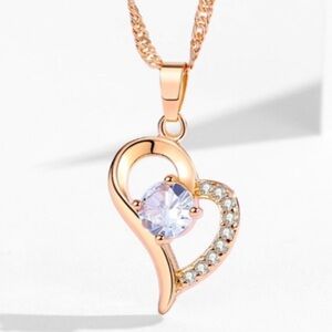 18k Gold Plated Heart & Faux Diamond Necklace in Rose Gold