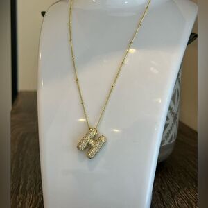 - **Design:** Initial "H" pendant covered in pavé crystals.