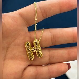 Elevate your style with this stunning 18k Gold Plated Initial "H" Necklace, a piece that’s sure to become a favorite in your jewelry collection. 1. **Statement Piece**