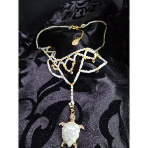 Elevate your style with this exquisite handcrafted necklace featuring moonstone, peach and champagne zircon beads, and a charming turtle pendant. Perfect for any occasion and sure to be a conversation starter.