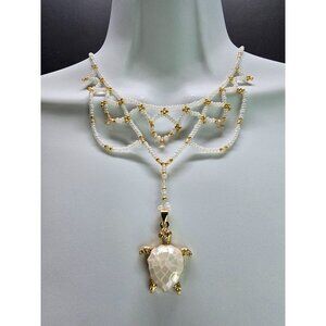 18k Gold Plated Moonstone Peach Champagne Zircon Beaded Necklace Turtle Pendant