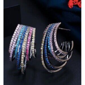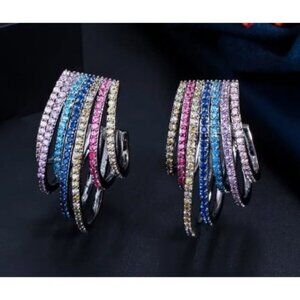 18k Gold Plated Multi-Color Simulated Diamond Zircon Half-Circle Drop Earring