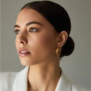 Add subtle movement to your ensemble with this gorgeous set of earrings. Designed with a twisted surface to catch the light brilliantly and 18k gold plated for a warm glow.