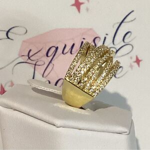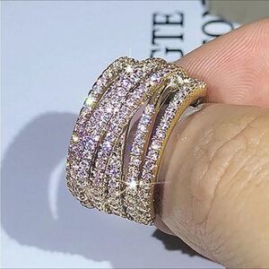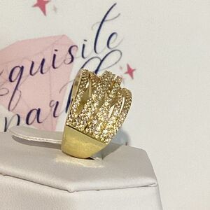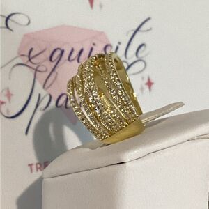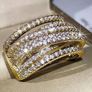 💛18k Gold Wide Band Micro Pave Cz Diamond Crisscross stacked Diamond Ring