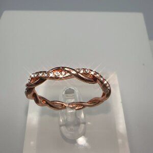 This twisted ring features shimmering rhinestones and a rose gold plated finish. Its lightweight construction makes it a comfortable and elegant accessory.