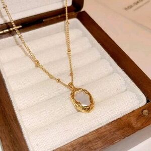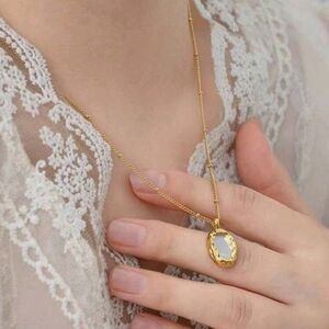 18k Stainless Steel Necklace,danity White shell Mother-Of-Pearl Inlaid Abalon