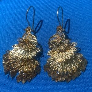 Authentic 18k Turkish Gold Peacock Chandelier Earrings. Absolutely beautiful!