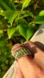 This stunning ring features a vibrant green 5.95 carat peridot gemstone set in a sleek 18k white gold with 47 round full cut H Vs diamonds band. Perfect for adding a touch of elegance to any outfit. absolutely beautiful piece that I'm not in a hurry to let go. stamped 18k and designer name Bellari or something