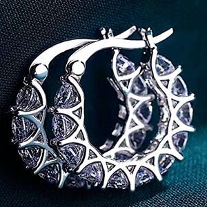 💋18k White Gold Filled Cz Diamond Hoop Earrings 💎