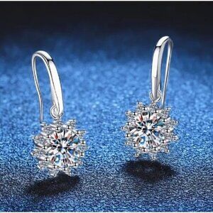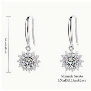 18k White Gold Plated Sterling Silver 0.5 CT Moissanite Sunflower Drop Earring