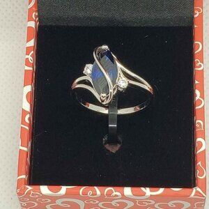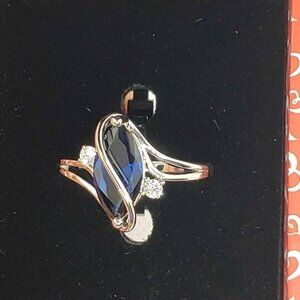18k White Gold Plated ring with blue gemstone