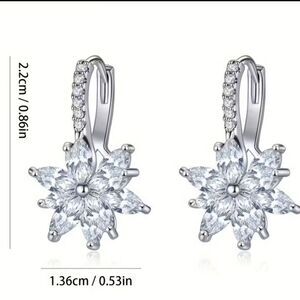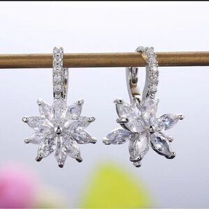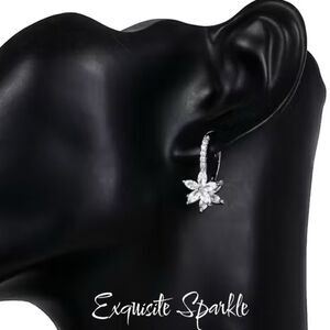 🌸18k White Gold Filled Lilly Stargazer zircon C Hoop Earrings
