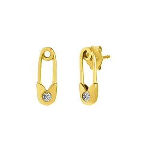 Stunning 18k yellow gold microplated sterling silver safety pin shaped earrings featuring posts and tension backs. The earrings measure about 1/2 inch in length and 1/8 of an inch in width.