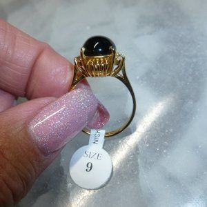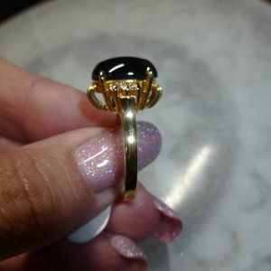 18k Yellow Gold EP Onyx Cubic Zirconia Dolphin Ore Ring