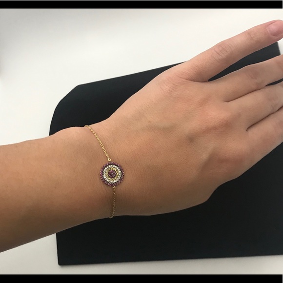 🧿18k Yellow Gold and Ruby Evil Eye Bracelet🧿