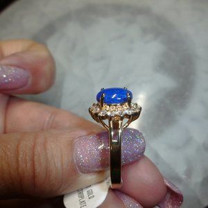 18k Yellow gold electroplated Lapis Lazuli Swarovski Crystals Designer Dolphin Ore Ring