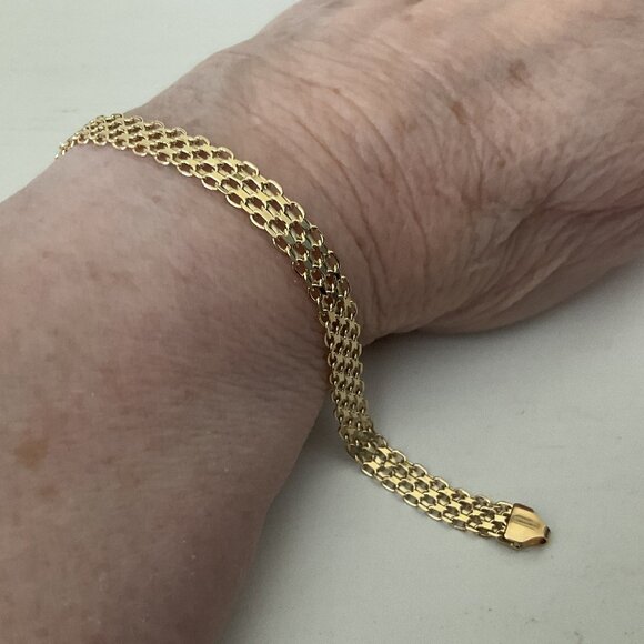 18k solid gold Bismark link bracelet NWT. Brand new in original packaging, 7’ length, approx. 4mm wide. Stand out bracelet, wear alone or with others. Lobster clasp, 4.7 grams. Allow an extra day to retrieve from safe deposit box before shipping.