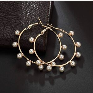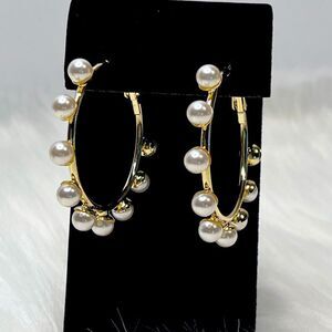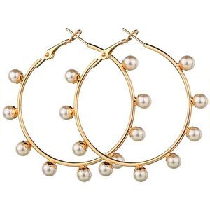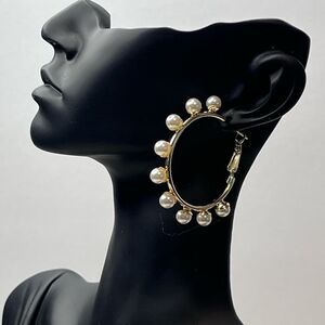 18k Gold Filled Pearl Hoop Earrings about 2inch length