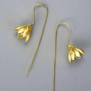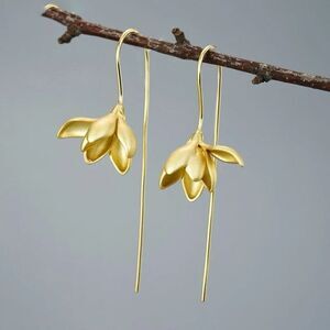18k Gold Plated 925 Silver Magnolia Flower Gold Earrings