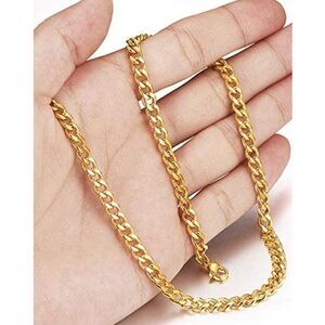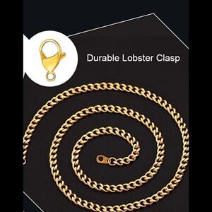 18k Gold over Sturdy 316L Stainless Steel Cuban Chain Necklace