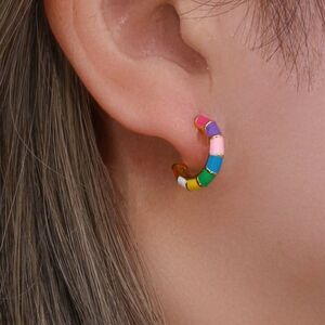 Rainbow mini hugger earrings 18 karat gold plated