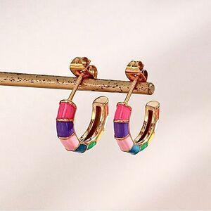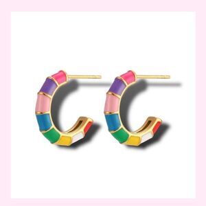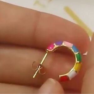 18 karat plated Multicolor Ceramic Mini Hoop Huggie Earrings Minimalist Design
