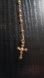Elegant gold rosary necklace featuring a cross pendant. Perfect for adding a touch of sophistication. Tarnish free. Lead and nickel free. Hypoallergenic.