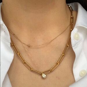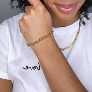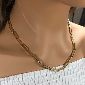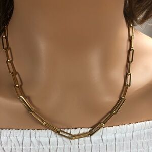 Beautiful large link 18k gold plated paperclip chain necklace. Looks great layered or on it's own. Last photo shows necklace with matching bracelet. Bracelet available in separate listing